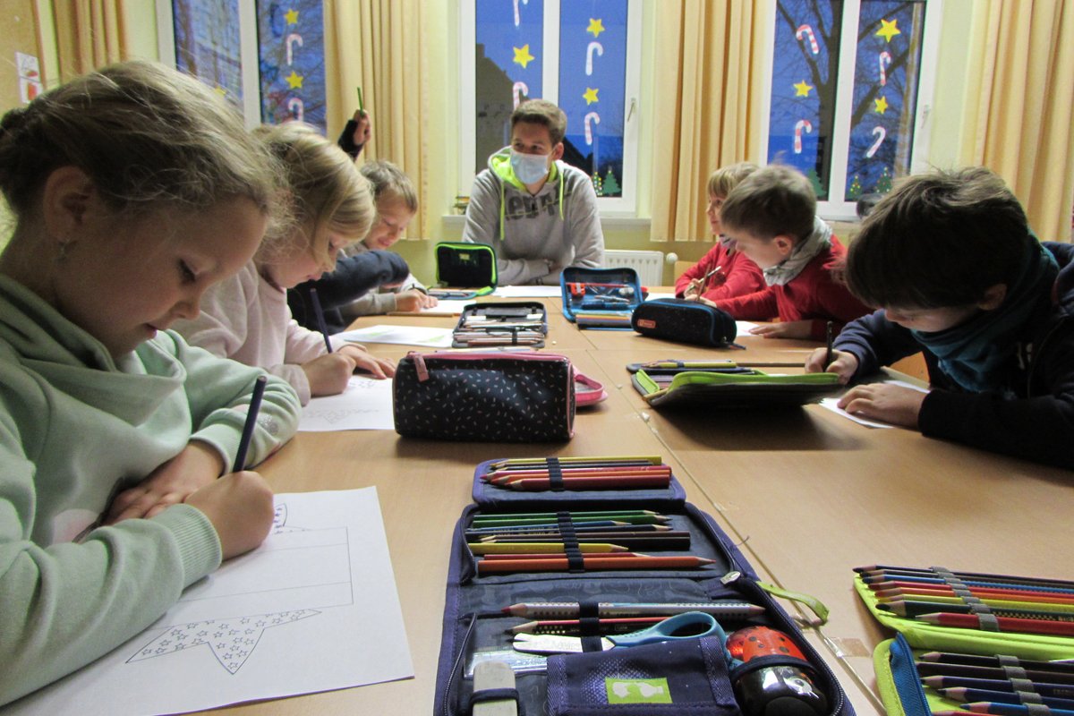 Weihnachtsstimmung verbreitet sich in der Grundschule Borgstedt. Der geschmückte Weihnachtsbaum leuchtet im Eingangsbereich und der Nikolaus hat für jedes Kind einen kleinen Gruß in der Schule vorbeigebracht. In den Klassen wurde an diesem Tag zu Weihnachtsmusik fleißig gebastelt. Fensterschmuck, Anhänger für den Weihnachtsbaum, Wichtel, Weihnachtskarten und vieles mehr wurde ausgeschnitten, geklebt, verziert und bemalt. Bei den vielen Weihnachtsmützen, die an diesem Tag in unserer Schule zu sehen waren, kam man sich vor wie in der Wichtelwerkstatt vom Weihnachtsmann. Da auch Wichtel ab und zu eine Pause brauchen, wurde zur Erholung in gemütlicher Runde ein Weihnachtsfilm geschaut.