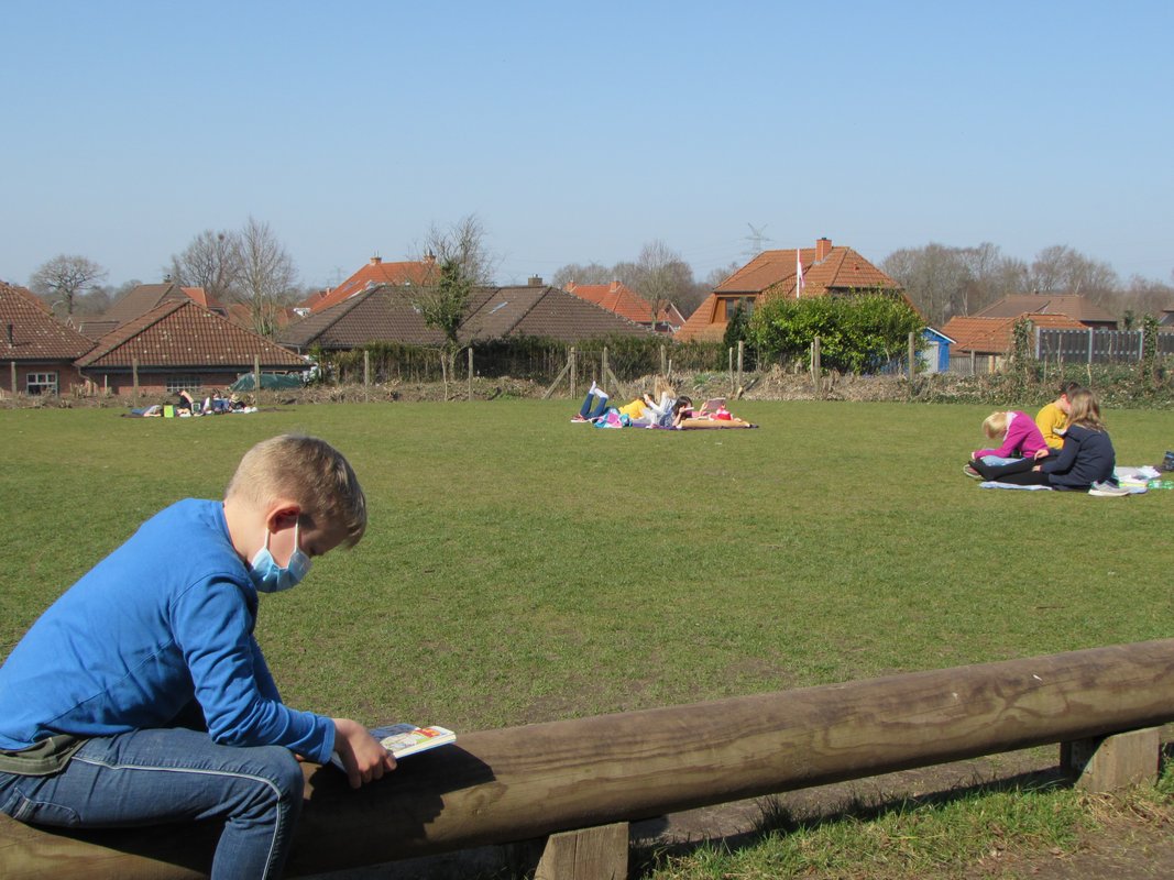 Das herrliche Frühlingswetter lud natürlich auch zum Lesen an der frischen Luft ein und so wurde an diesem Tag überall fleißig in unzähligen Bücher gestöbert.