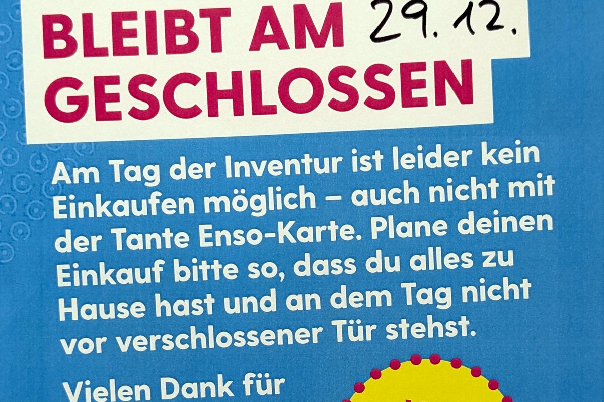Am 29. Dezember ist Inventur bei Tante Enso und kein Einkaufen möglich, auch nicht mit der Tante-Enso-Karte.