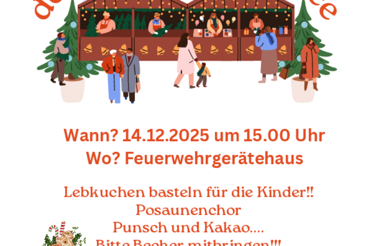 Am 3. Advent findet die alljährliche Adventsfeier der Gemeinde am Feuerwehrgerätehaus statt. Ab 15 Uhr gibt es Punsch, Kakao, Grillwurst und, und, und … der…