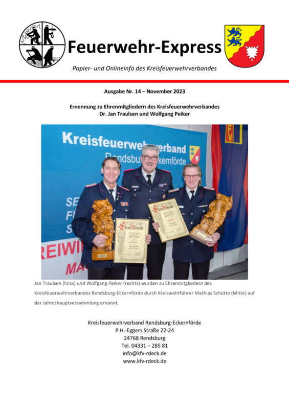 Der Feuerwehr-Express Ausgabe 14 – November 2023 ist erschienen. Es kann über diesen Link beim Kreisfeuerwehrverband heruntergeladen werden.