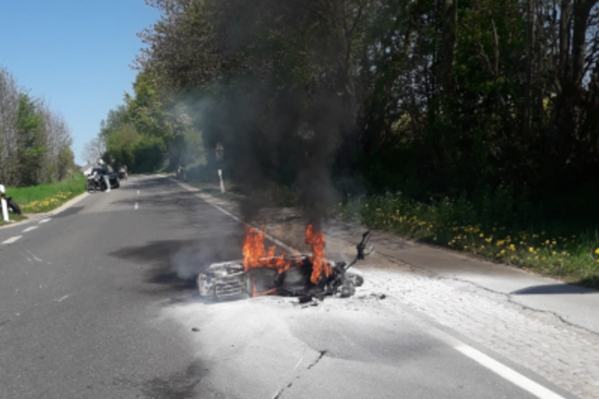 Gegen 14:40 Uhr wurden wir alarmiert, weil im Bereich Haby-Kreuzung ein Motorrad verunglückt war und brannte. Der Fahrer wurde rettungsdienstlich versorgt. Nach dem…