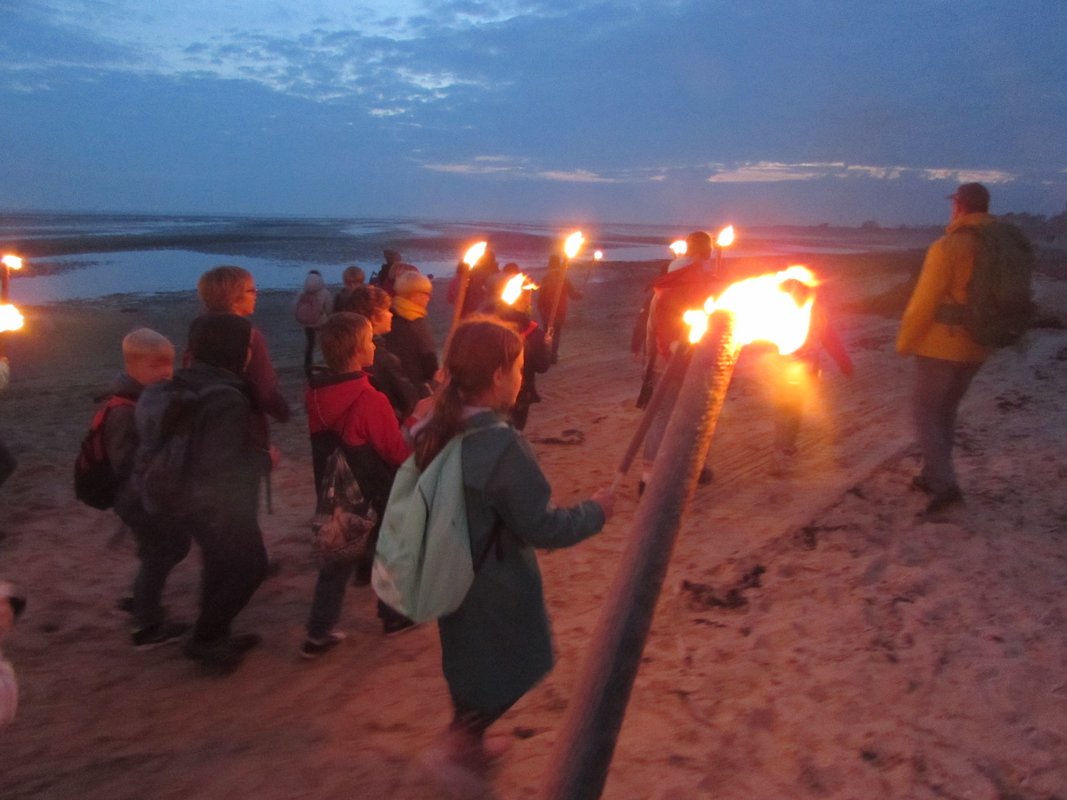 Eine Woche vor den Herbstferien gingen die Füchse und die Koalas auf große Fahrt. Mit Reisebus und Fähre machten sie sich aus dem Staub und auf den Weg auf die Insel. Für eine Woche war nun Nieblum auf Föhr das Zuhause unserer Viertklässler. Hier erlebten alle eine schöne Zeit und viele spannende Ereignisse. Das erste große Abenteuer war das Beziehen der Betten. Mit zum Teil sehr interessanten und kreativen Techniken konnte aber jeder am Ende des Tages gemütlich einschlafen. Die fünf Tage gingen natürlich viel zu schnell vorbei. Zum Glück war in den Koffern zur Abreise aber viel Platz. Die unzähligen Naschisachen wurden nämlich zum Teil schon am ersten Tag aufgegessen. So konnte jeder viele schöne Erinnerungen einpacken. In den Koffern landete zum Beispiel Bernstein Uwe, der alle beim Bernsteinschleifen Zahnpasta lutschen lies. Der frierende große Onkel beim Wattwandern und das Versteckspielen im Dunkeln lagen gleich neben der Fackelwanderung und dem Lagerfeuer. Minigolf und Kerzenziehen passten auch mit rein und oben drauf lag die Disco und der Kinoabend. Spielen, lachen, Blödsinn machen und sich gegenseitig necken kamen noch in die Zwischenräume. Als Andenken für Mama und Papa gab es noch jede Menge Schmutzwäsche. Tschüss Föhr und vielen Dank für die schöne Zeit!