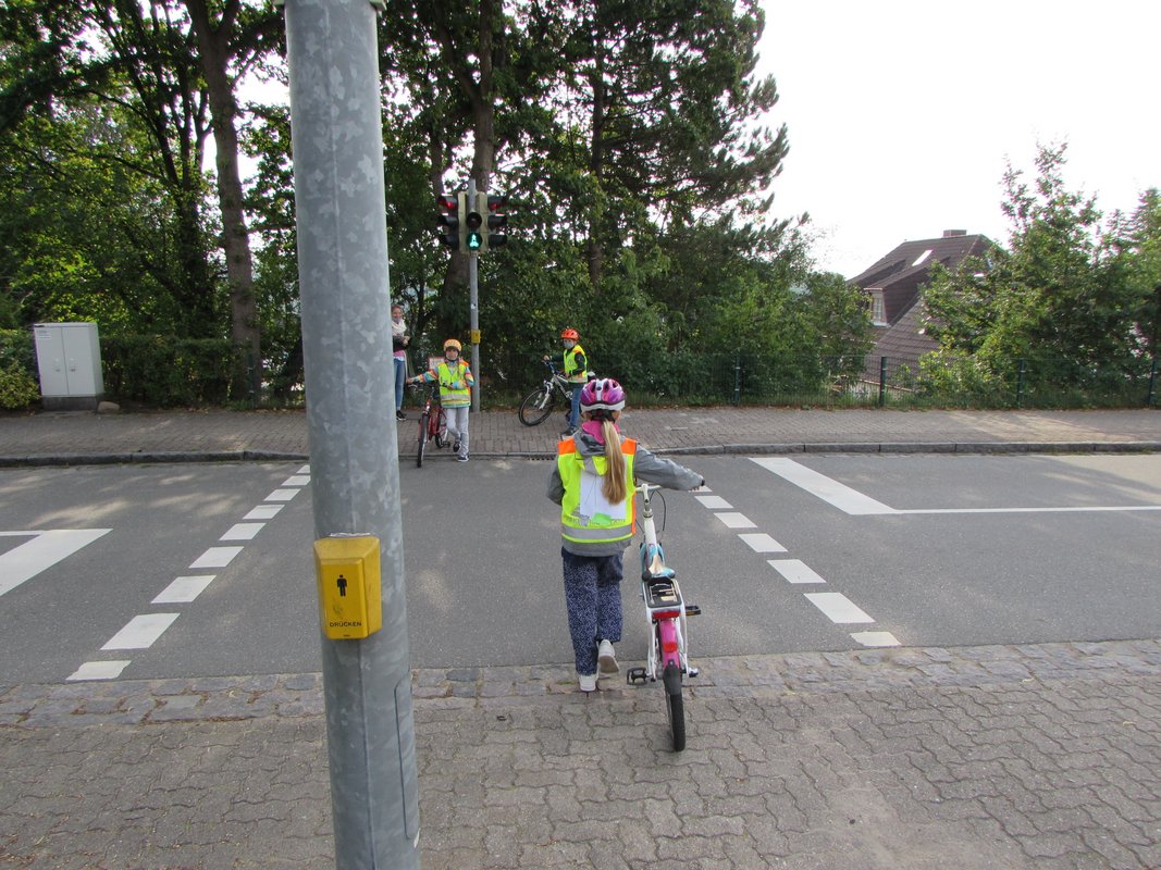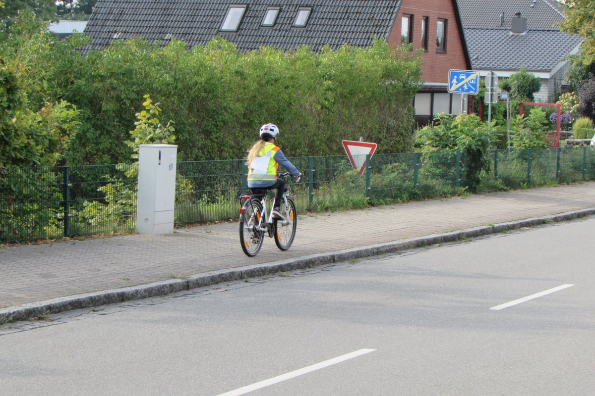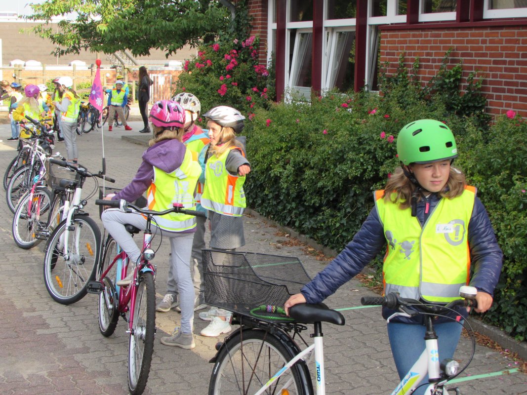 Fleißig wurde geübt und gelernt damit am Tag der Radfahrprüfung nichts schiefgeht. Die Vorfahrtsregeln, die Verkehrszeichen, die Handzeichen, das Umschauen und die Bestandteile eines verkehrssicheren Fahrrads, für unsere Viertklässler alles kein Problem! Selbst in den Pausen wurden Verkehrssituationen nachgespielt und nachmittags traf man sich zum gemeinsamen Abfahren der Prüfstrecke. Trotz der super Vorbereitung war die Aufregung am Tag der Prüfung natürlich groß. Doch beim ersten Tritt in die Pedale war das Magengrummeln verschwunden und die Strecke wurde mit Bravour gemeistert. Selbst abgesprungene Ketten und die Müllabfuhr stellten für unsere Radler kein Problem dar. Den anschließenden Heimweg, ganz allein mit dem Fahrrad, haben sich alle mehr als verdient.