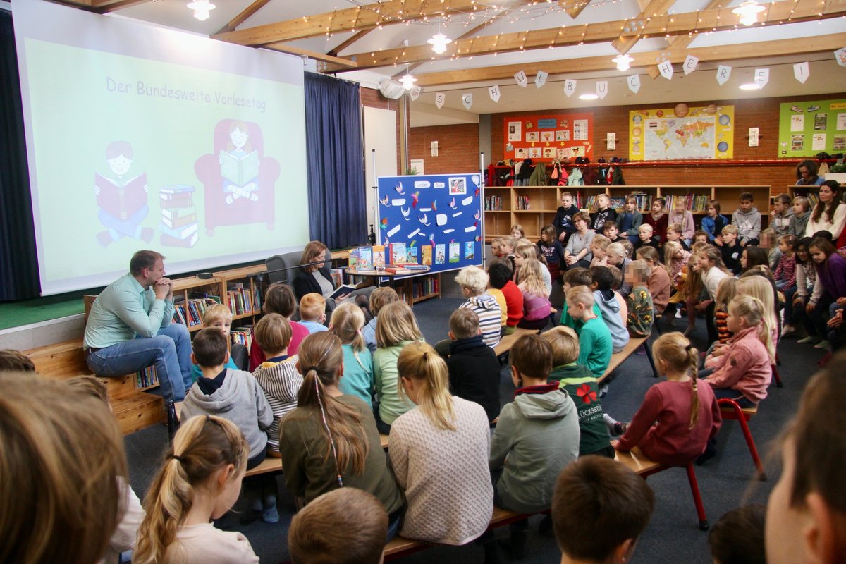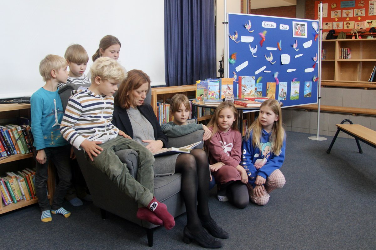 Am diesjährigen Bundesweiten Vorlesetag hatten wir an unserer Grundschule die besondere Ehre, die Bildungsministerin Karin Prien als Vorleserin begrüßen zu dürfen. Die Ministerin nahm sich viel Zeit, um den Schülerinnen und Schülern aus dem Buch „Hoffnungsvogel“ von Kirsten Boie vorzulesen, und sorgte damit für strahlende Gesichter und gespannte Aufmerksamkeit in der Aula.