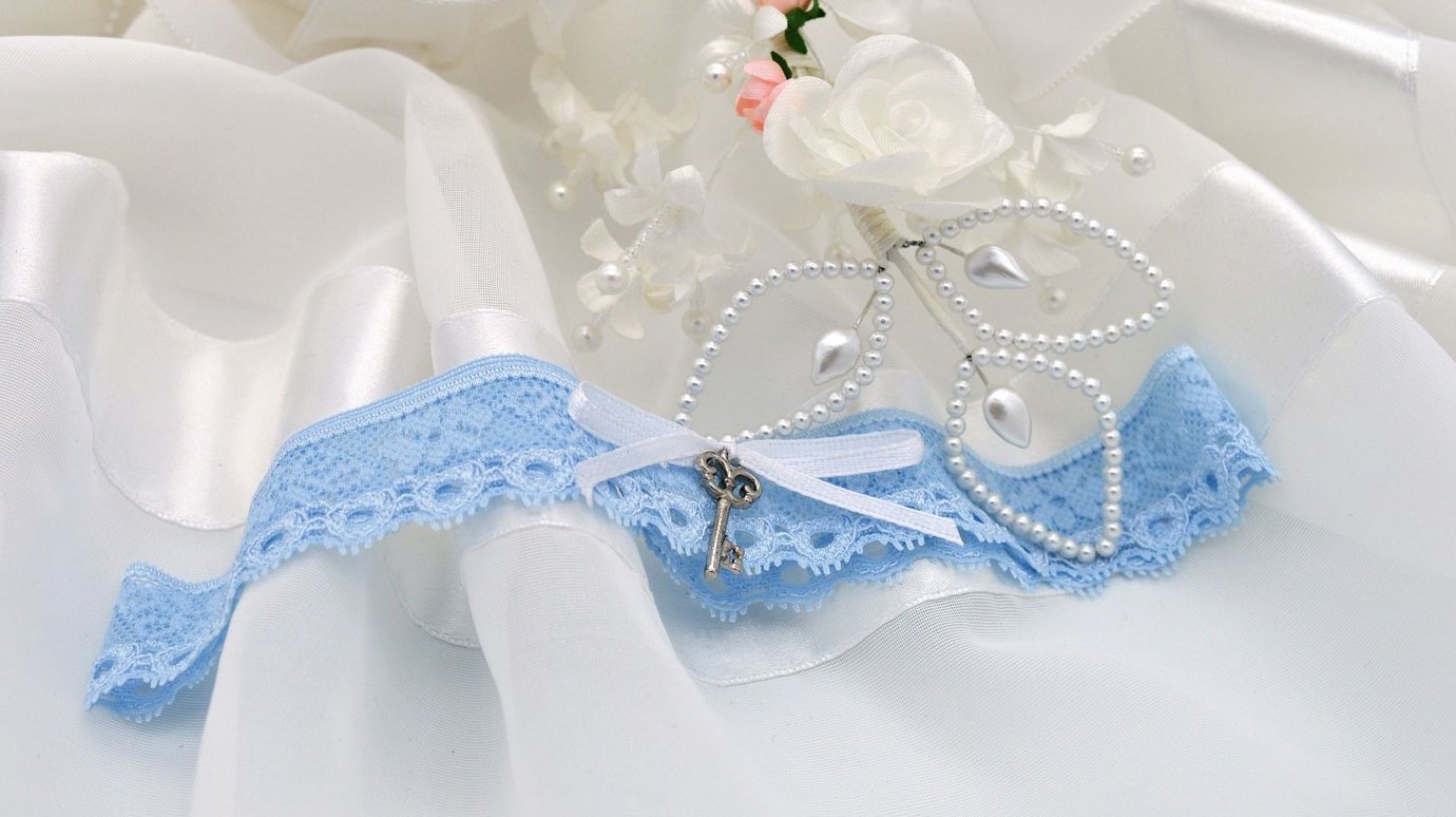 - Etwas Blaues, oft ein blaues Strumpfband, als Sinnbild für die Treue, denn blau ist die Farbe der Treue.