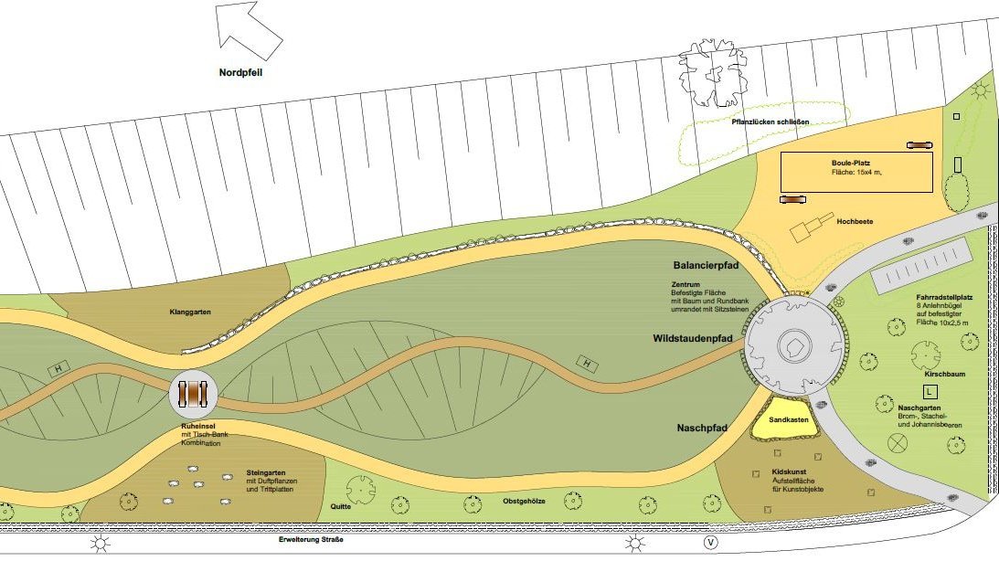 Die verschiedenen Elemente und Bereiche des Naschgartens entwickelte das beauftragte Planungsbüro gemeinsam mit den Owschlager Bürgerinnen und Bürgern: