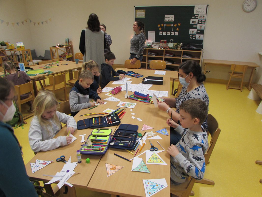Unzählige Hände waren an unserem jährlichen Adventsbasteltag fleißig und haben Weihnachtsschmuck unterschiedlichster Art erstellt. Ob Sterne, Engel oder Tannenbäume - es gab viele verschiedene Kreationen zu bestaunen. Bevor es losging, versammelten sich alle Kinder in der Aula und