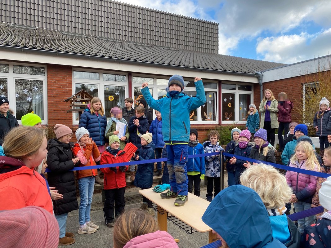 Auch in diesem Jahr hatten sich die Kinder wieder gewünscht, den jahrgangsinternen Armdrückwettbewerb und die regelmäßige Zeig-was-du-kannst-Pause durchzuführen. Organisiert von Klasse 4 wurden daher an vier Freitagen im Februar und im März in der großen Pause beim Armdrücken die Muskeln zum Glühen gebracht. Jedes Kind, das teilgenommen hat, wurde später mit einer Urkunde geehrt. Die Stimmung in den Pausen war so hervorragend, dass bei schönstem Frühlingssonnenschein sogar das Tanzen angefangen wurde.