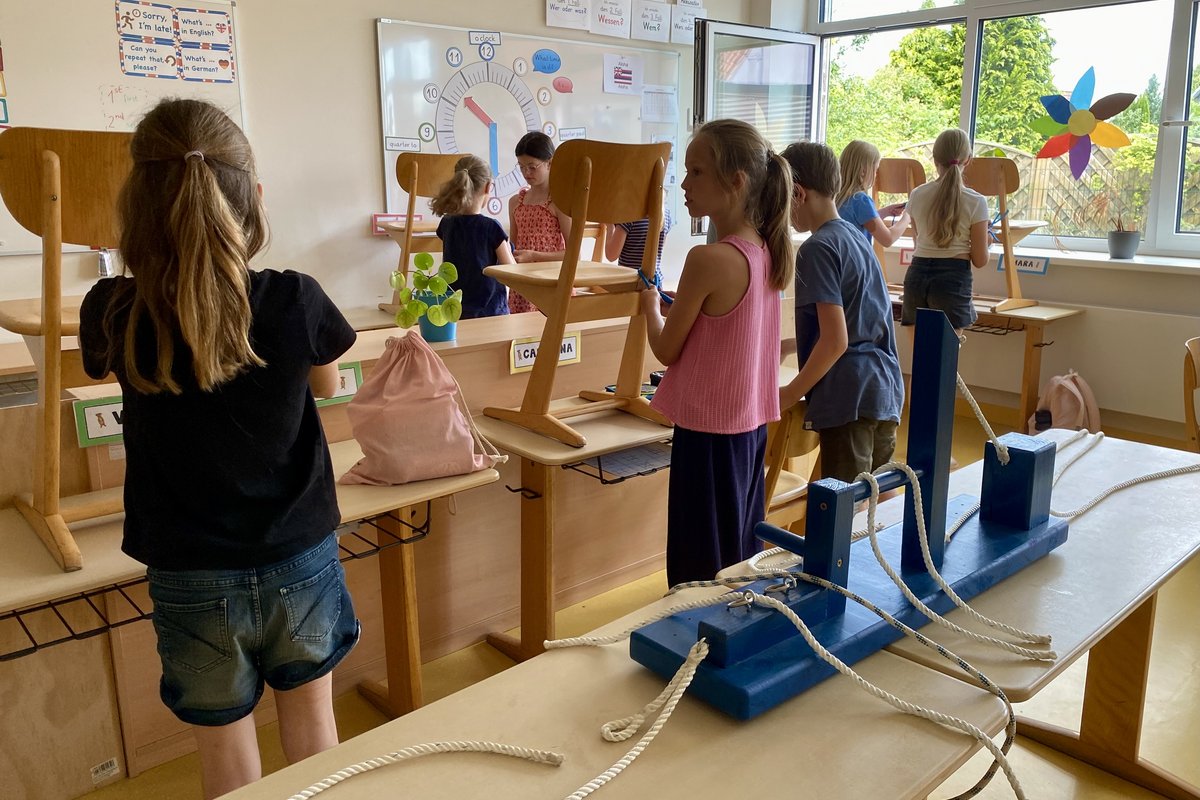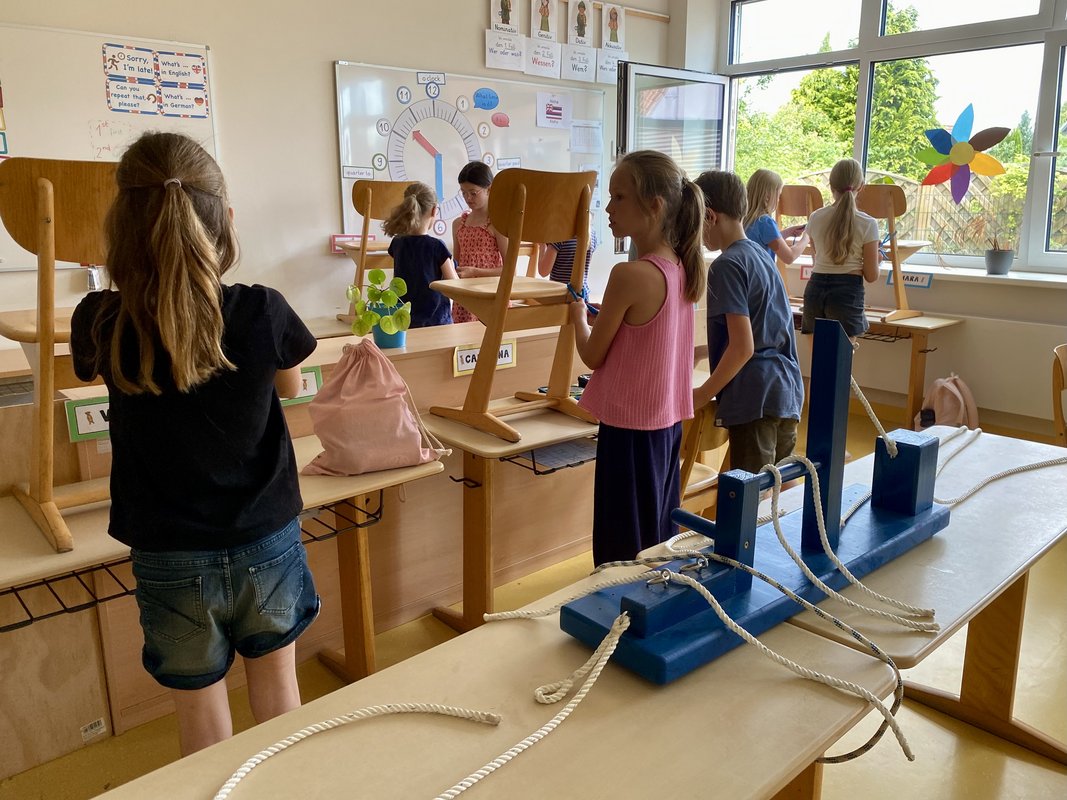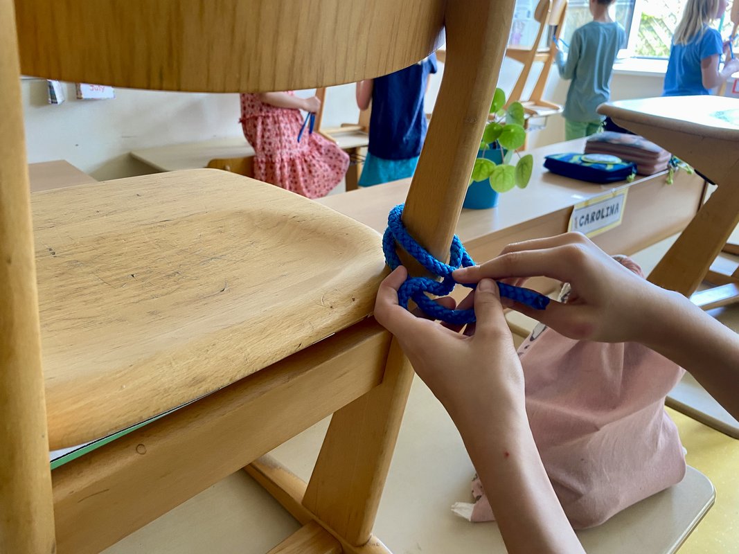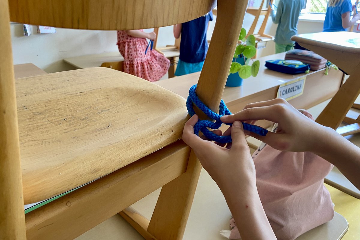 Gleichzeitig genossen die Kinder in der Schule ein echtes Erlebnis der Extraklasse: eine aufregende Einführung in die Welt der Knoten! Unter der fachkundigen Anleitung eines waschechten Knotenprofis lernten sie wichtige Knoten wie den Palstek, den Achterknoten und den Kreuzknoten – und das mit viel Spaß und noch mehr Seil. Mit großer Begeisterung wurde ausprobiert, geübt und perfektioniert. Besonders cool: Mit einer Leine mussten die Kinder lassoähnlich ein Ziel treffen – gar nicht so einfach!