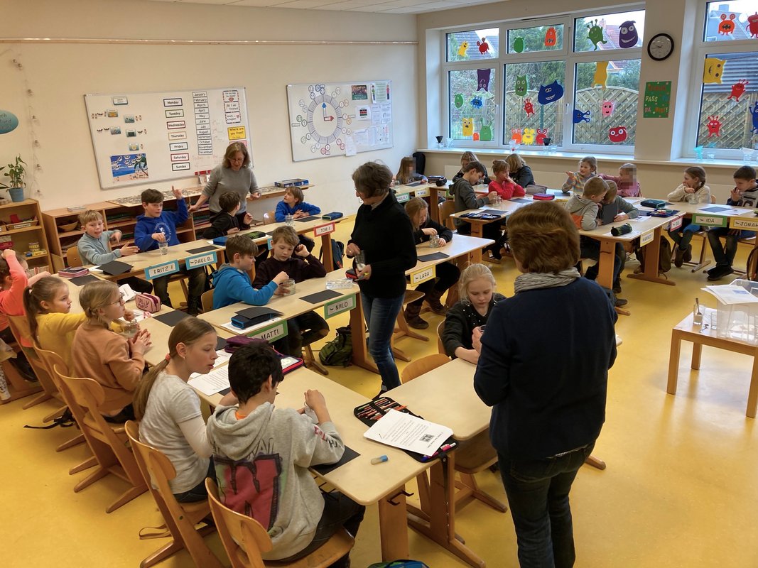 dabei um die vier Elemente Luft, Wasser, Erde und Feuer. Die Erstklässlerinnen und Erstklässler erfuhren, dass Luft sogar versunkene
