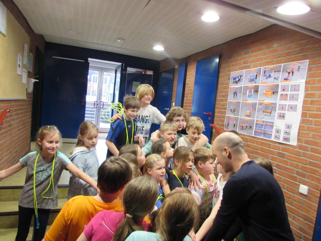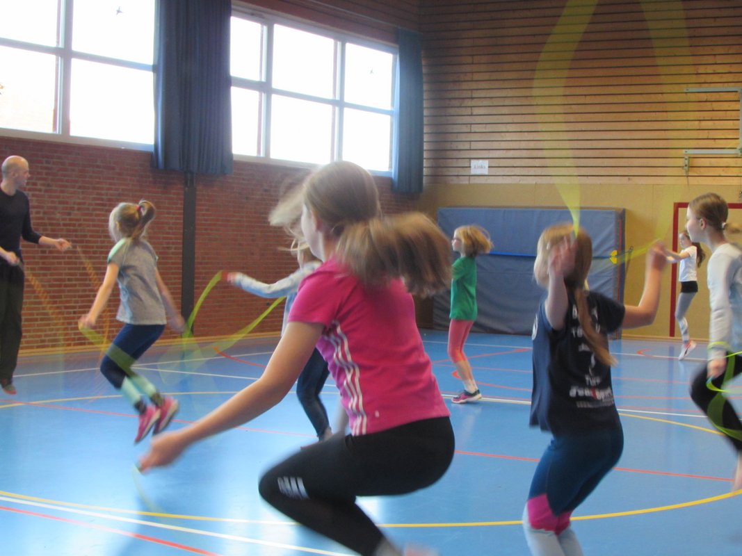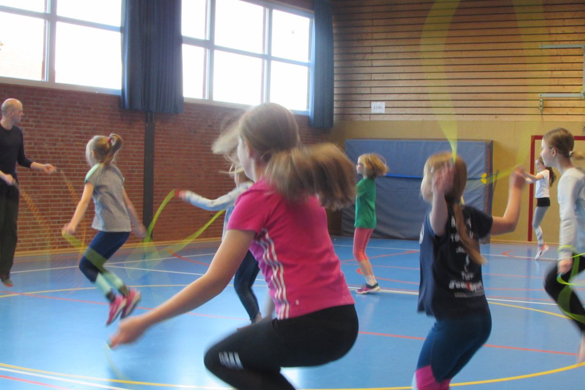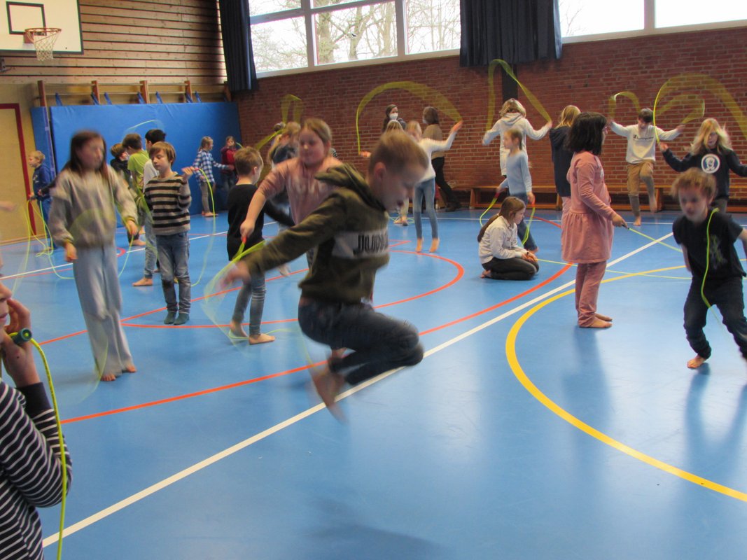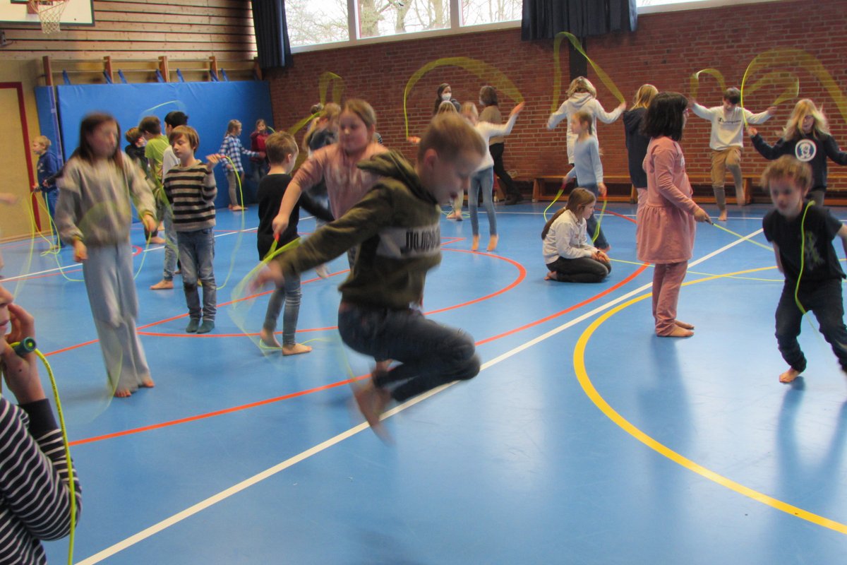 Am 1. Februar 2023 fand an der GS Borgstedt der Workshop ”Skipping Hearts – Seilspringen macht Schule“ statt. Es handelt sich dabei um ein Projekt der Deutschen Herzstiftung. Durch Spaß an der Bewegung im Grundschulalter wird ein gesunder Lebensstil angeregt. Dieser ist eine wichtige Voraussetzung, um im Alter nicht am Herzen zu erkranken. Die Schüler und Schülerinnen der Klasse 4 machten sich also auf in die Turnhalle, wo sie von Workshopleiter Ronny Steinbrück erwartet wurden. Unter dem Motto „Jeder wie er/sie kann“, wurden zunächst einfache, dann immer schwierigere Sprünge mit dem Seil eingeübt. Mit Musik und guter Laune absolvierten die Kinder schließlich den aufgebauten Parcours. Als Höhepunkt der Veranstaltung gab Klasse 4 eine Seilsprungvorstellung vor allen anderen Klassen der Schule. Im Anschluss übten alle Kinder gemeinsam und hochmotiviert das Seilspringen. In den Pausen kann man erkennen, dass nun das Seilspringfieber bei uns ausgebrochen ist.