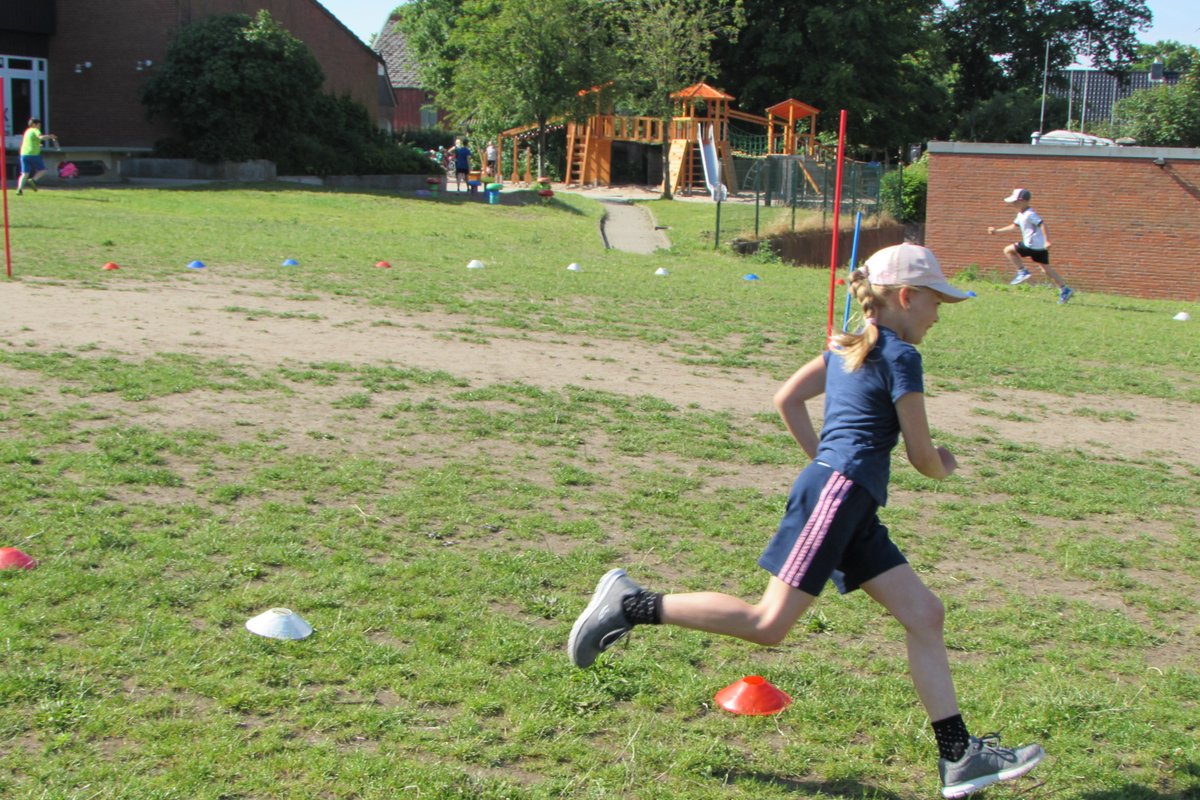 Endlich war es so weit! Bei herrlichem Sonnenschein konnte in der Grundschule Borgstedt wieder fleißig gesportelt werden. An 11 Stationen, die auf dem gesamten Schulgelände und im Mehrgenerationengarten verteilt waren, haben die Kinder gezeigt, was alles in ihnen steckt. Egal, ob beim Fahrradmantelwurf, beim Stabfliegen oder beim Bananenkistenlauf, überall wurden eifrig Punkte gesammelt. Das schönste dabei war die tolle Unterstützung für alle Sportlerinnen und Sportler. Nicht nur die Musik konnte man weit über das Schulgelände hinaus hören, sondern auch die vielen Anfeuerungsrufe, die zeigten, dass es hier zur Sache geht. Dank vieler fleißiger Hände aus der Elternschaft wurde dieser Tag zu einem vollen Erfolg, den nicht nur die Schulkinder genossen haben. Zum ersten Mal waren unsere zukünftigen Erstklässlerinnen und Erstklässler mit dabei und zeigten, dass auch in ihnen richtige Sportskanonen stecken. Erschöpft aber glücklich starteten alle am Ende ins wohlverdiente Wochenende. Es war eine wirklich tolle Atmosphäre und ein Hauch von Olympia wehte an diesem Tag über unser Schulgelände. Vielen Dank an alle Helferinnen und Helfer, die dieses schöne Ereignis ermöglicht haben!
