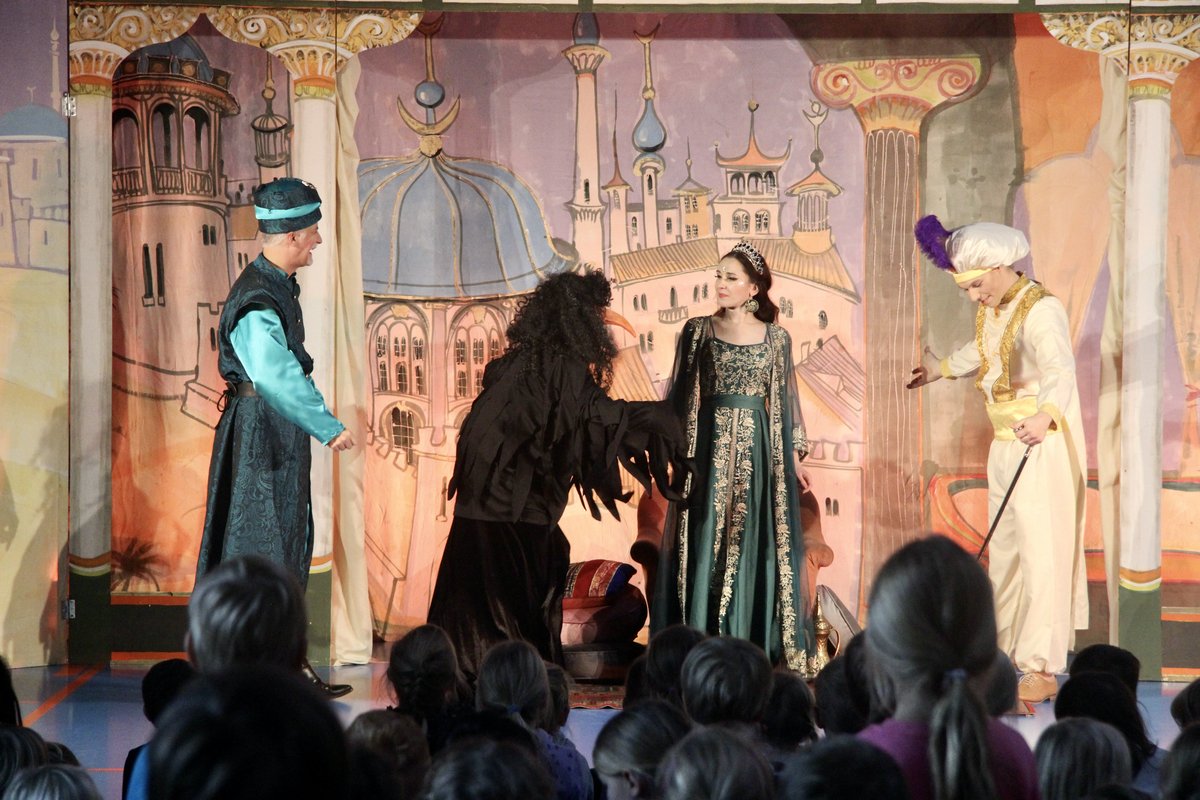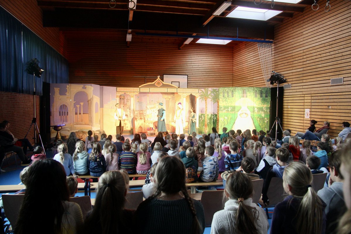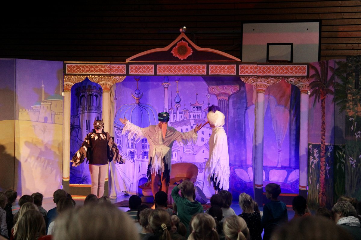 Gebannt verfolgten sie die Geschichte von „Kalif Storch“ nach dem Märchen von Wilhelm Hauff. Tolle Kostüme, lustige und bewegende Szenen, starke Schauspielleis- tungen und faszinierende Effekte waren im Licht der Scheinwerfer vor dem märchenhaften Bühnenbild zu bewundern. Das Publikum lachte, klatschte und verfolgte gebannt das Geschehen. Mithilfe des Zauberworts „Mutabor“ (und nicht „Bitte“) wurde unser Kalif am Ende des Märchens glücklicherweise wieder in einen Menschen zurückverwandelt und musste nicht auf ewig ein Storch bleiben. Wer weiß, vielleicht hilft dieses Zauberwort den Kindern ja auch weiter, sollten sie sich irgendwann einmal in einer ähnlichen Situation befinden...