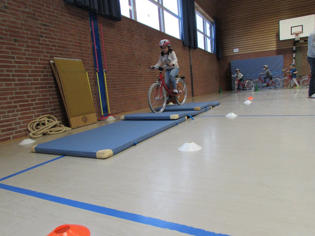 Die Turnhalle wurde zum Hindernisparcours für Fahrrad und Roller, denn in dieser Woche war das Bewegungsmobil in unserer Schule zu Gast. Ob Wackelbrücke, Fahrradlimbo oder Donuttransport, die Kinder von Klasse 1 bis 4 stellten ihr Können und ihre Geschicklichkeit bei jeder Herausforderung unter Beweis und ließen die Reifen ordentlich qualmen. Die Fahrradprüfung im vierten Schuljahr kann kommen!