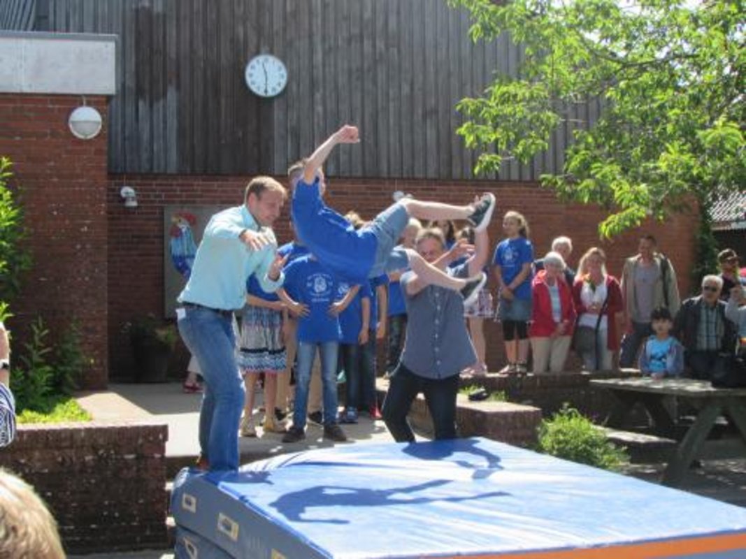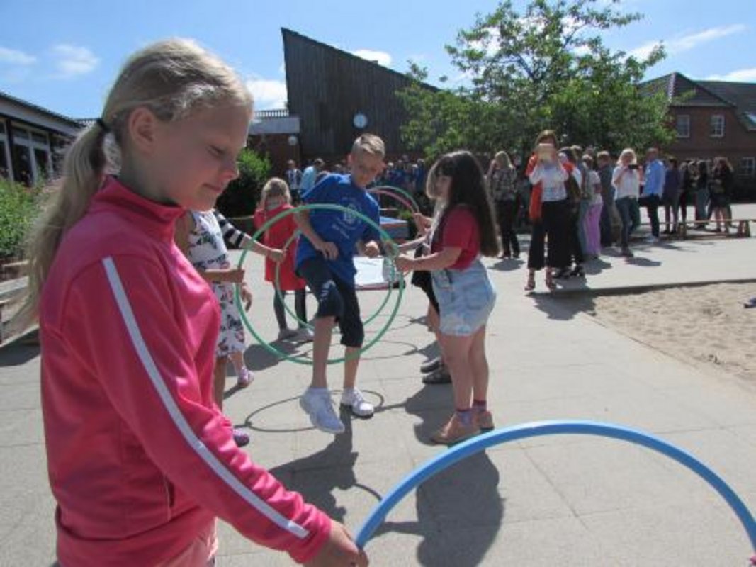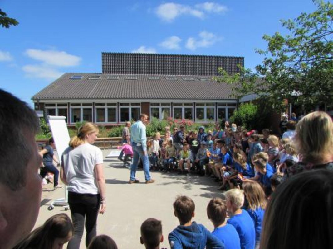 Kurz vor den Sommerferien hieß es noch einmal Partystimmung an der Grundschule Borgstedt. Zum einen sollten die Zeugnisse und der Fleiß eines jeden gewürdigt werden und zum anderen stand der Rausschmiss der Viertklässler an. Nachdem alle Ihre Giftblätter erhalten hatten, ging es in die Aula. Die Ehrenplätze gehörten natürlich den Löwen. Mit Musik, einem Theaterstück und vielen lieben Worten wurden sie verabschiedet. Sie selbst revanchierten sich mit einem Instrumentalstück, einem Abschiedslied und einem tollen Video. Den Abschluss bildeten der Rausschmiss, das Reifenspalier, die Blumenübergabe durch die Paten und ein Schülerlehrerduell, welches die Löwen natürlich gewonnen haben.