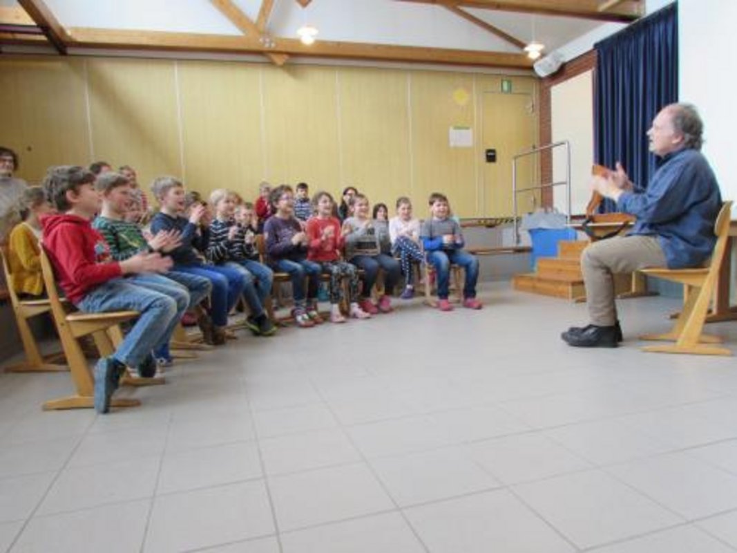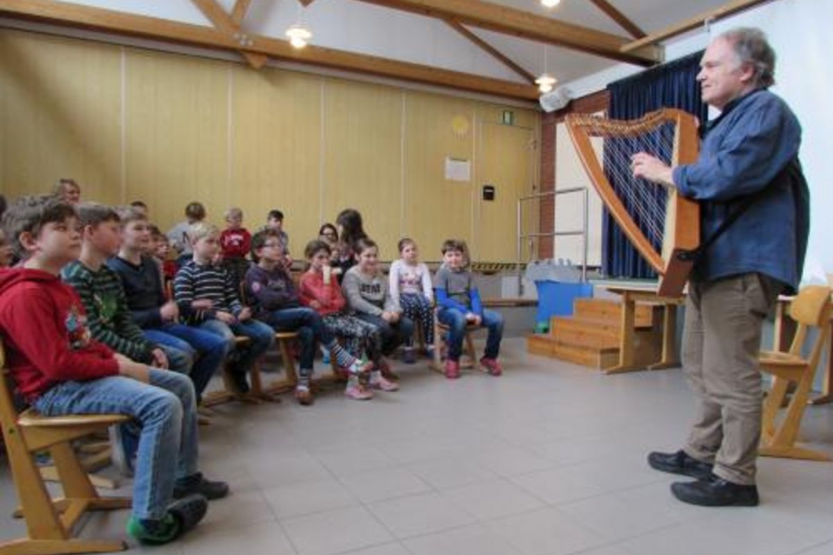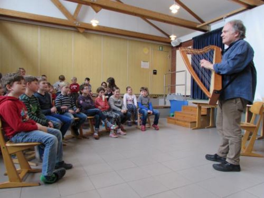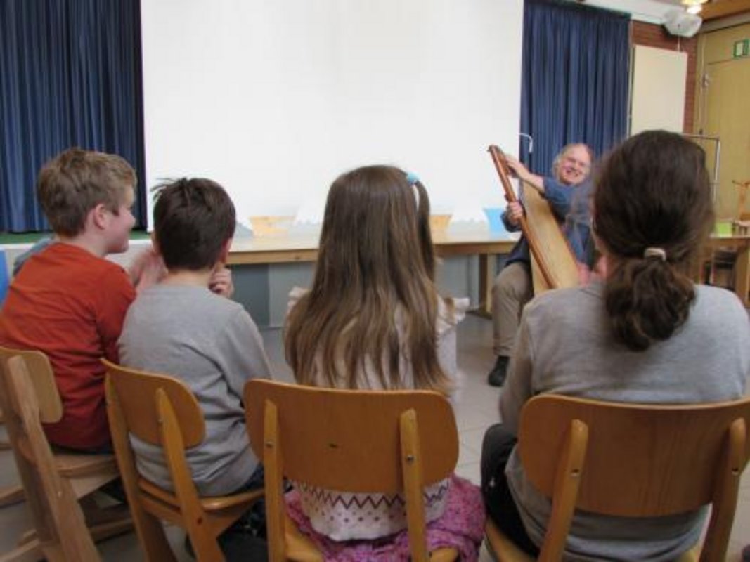 Der Märchenerzähler war zu Besuch und hatte etwas besonderes dabei, eine Harfe. Er hat jeder Klasse ein anderes Märchen erzählt. Die 4. Klasse hat er mit einem Märchen aus China verzaubert. Meistens hat er auch ein passendes Lied zum Märchen auf der Harfe gespielt und dazu gesungen. Am Ende durften wir auch Fragen stellen. Es war echt ein Tag zum Genießen.