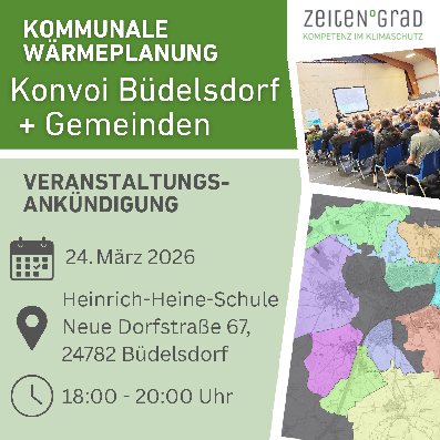 Die Gemeinde Borgstedt hat gemeinsam mit anderen Gemeinden sowie der Stadt Büdelsdorf ebenfalls eine kommunale Wärmeplanung durchgeführt, zusammen mit der Entwicklungsagentur Rendsburg. Sie sind herzlich eingeladen zur Vorstellung der Ergebnisse.