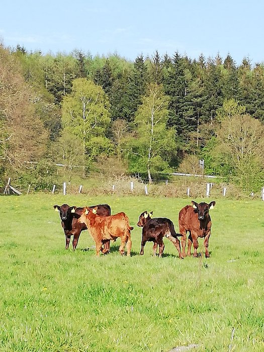 Wir, die Familie Ingo und Christiane Schröder, halten auf unserem Bauernhof mitten im Naturpark Hüttener Berge Angus-Rinder und die alte Schweinerasse Bunte Bentheimer. Unsere Rinder sowie unsere Bentheimer-Schweine leben im Familienverband auf natürlichen und unbehandelten Weiden. Wir vermarkten unsere Fleisch- und Wurstprodukte direkt von unserem Hof und freuen uns immer auf interessierte Besucher.